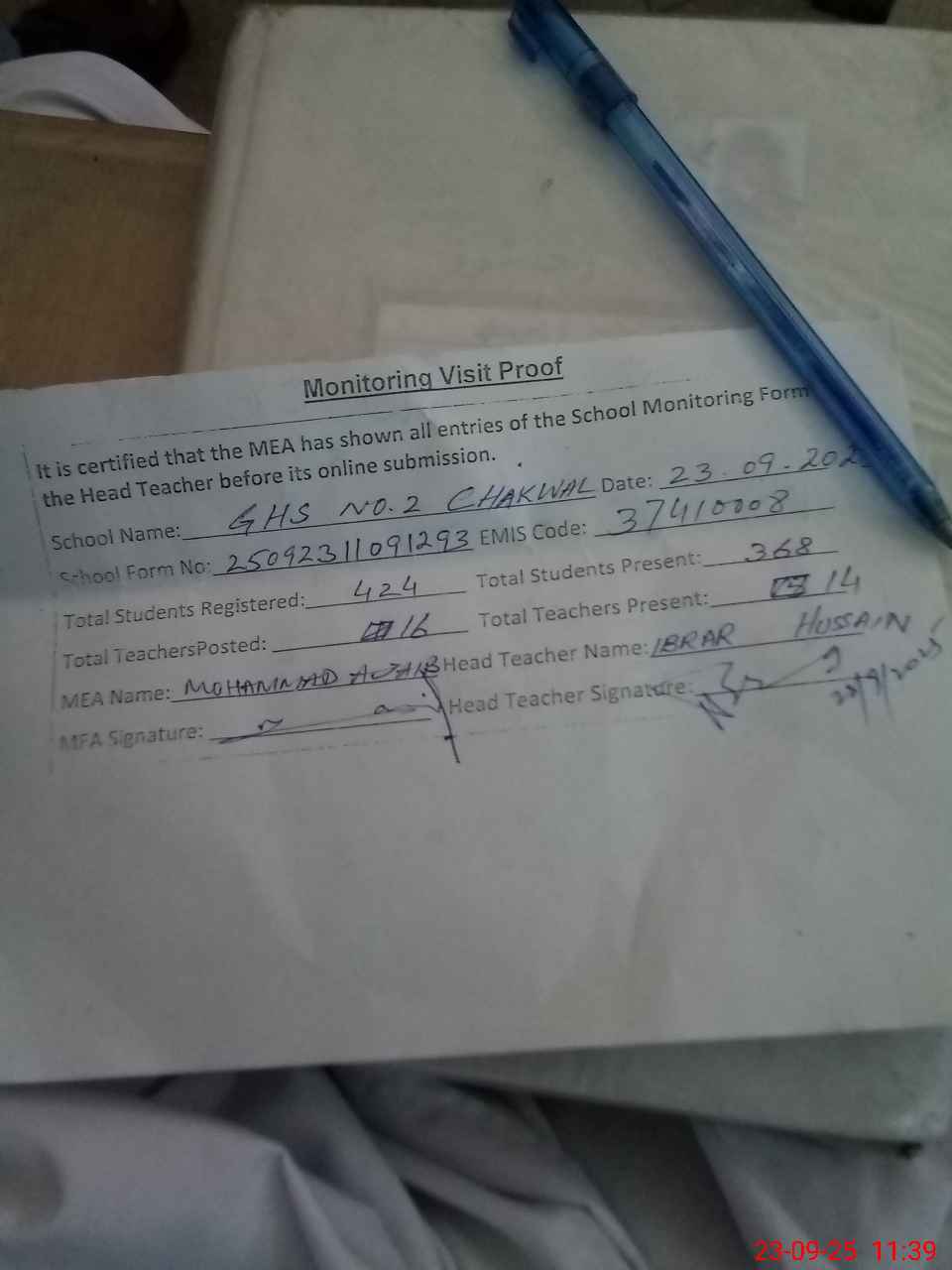 | EMIS Code: 37410008 | Name of School: GHS NO. 2 CHAKWAL | |||