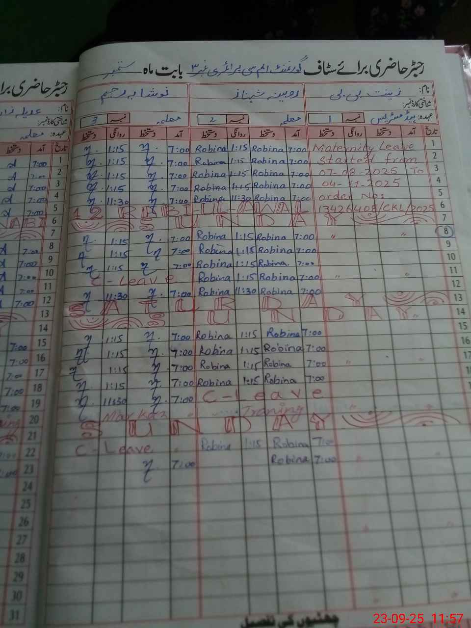 | 37**** | Ze**** Bi**** | PST | Regular | 0 | 0 | 0 | 0 | 0 | 0 | 0 | 0 | 0 | Maternity |