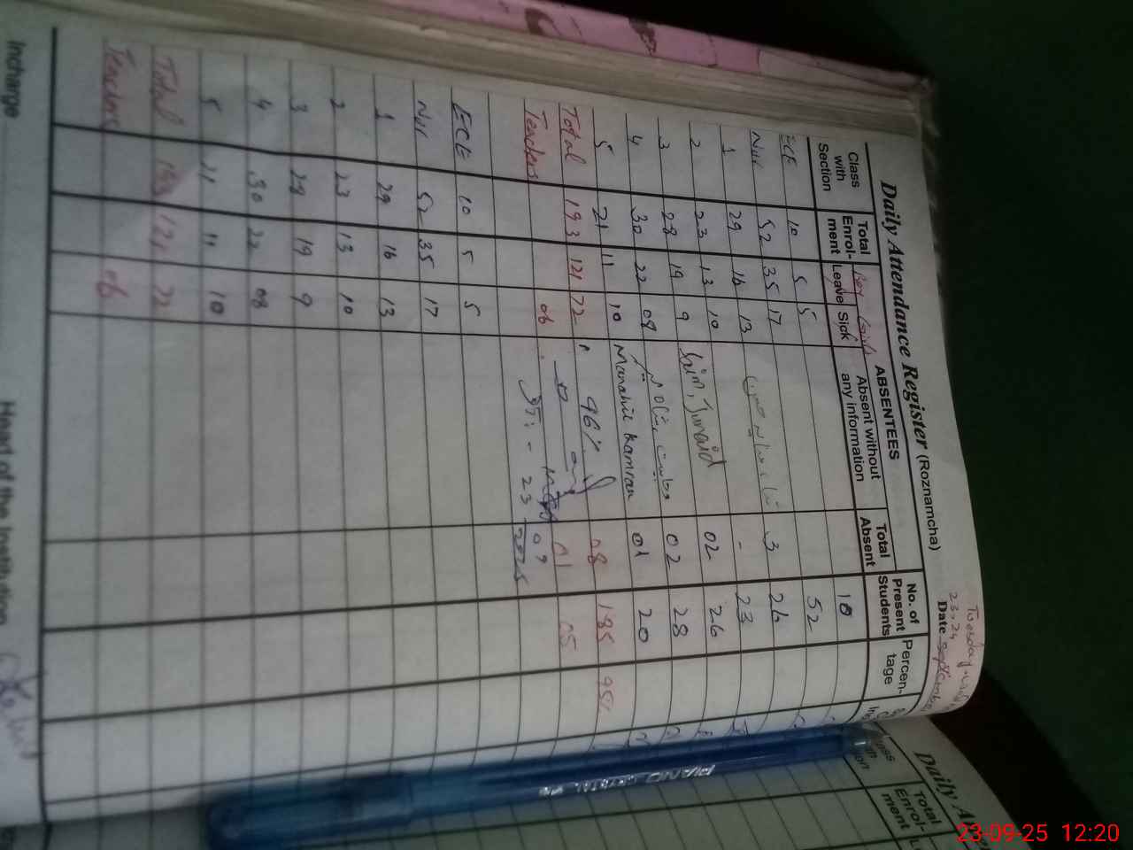 | Total Students Present | 10 | 0 | 52 | 26 | 23 | 26 | 28 | 20 | 185 | |||||||