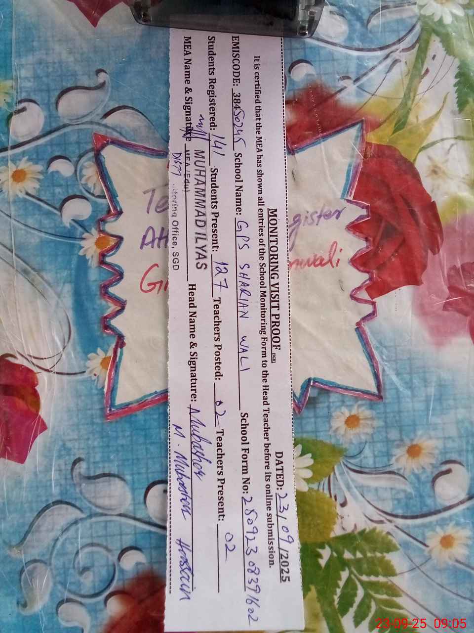 | EMIS Code: 38450245 | Name of School: GPS SHARIAN WALI | |||