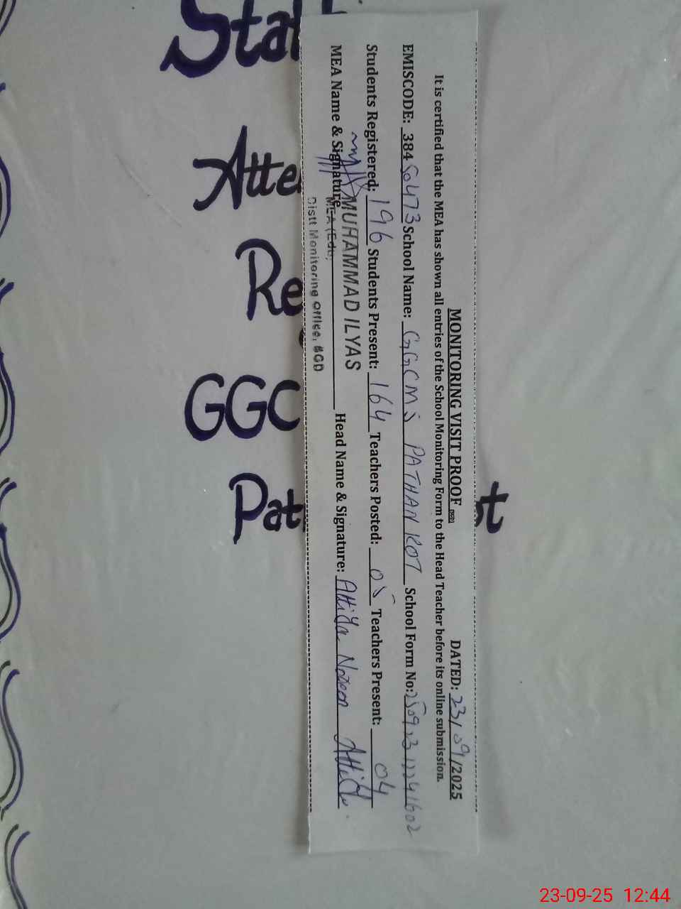 | EMIS Code: 38450473 | Name of School: GGCMS PATHAN KOT | |||