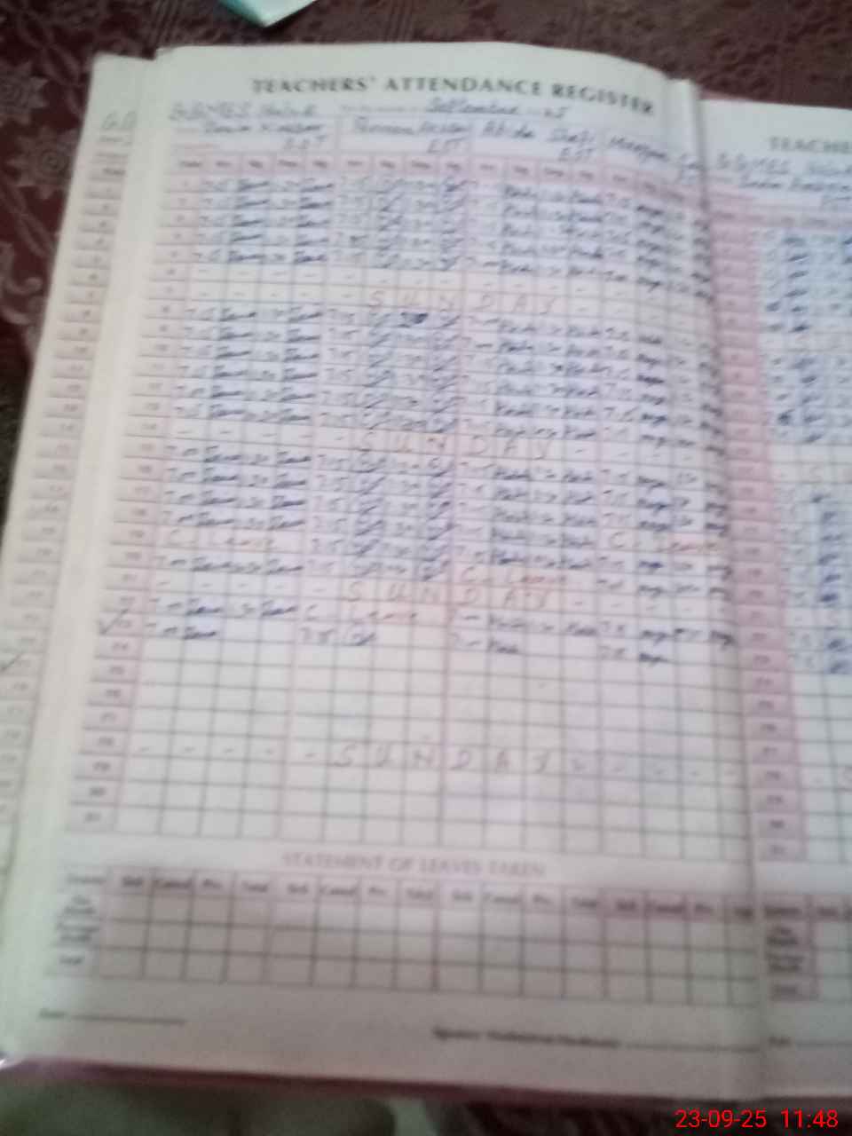 Leave Type | Remarks for Today (Leave,Training, Exam,Absent,Late, Other Duty) |