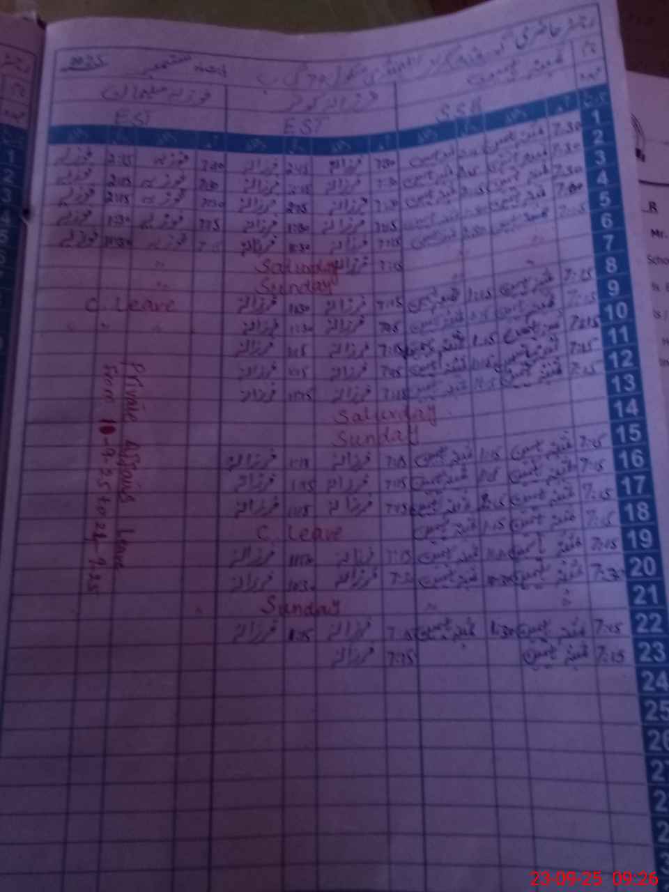 | Monitoring Date: 23-09-2025 | Start Time: 23-09-2025 08:54 AM | End Time: 23-09-2025 09:30 AM | Name of MEA: LI**** AL**** | |
