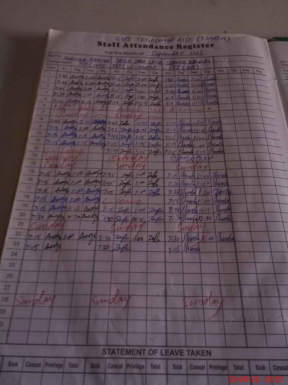 | Name: Za**** La**** Designation: (School Headmaster's/Headmistress's) PST Phone/Cell Number: 03**** |