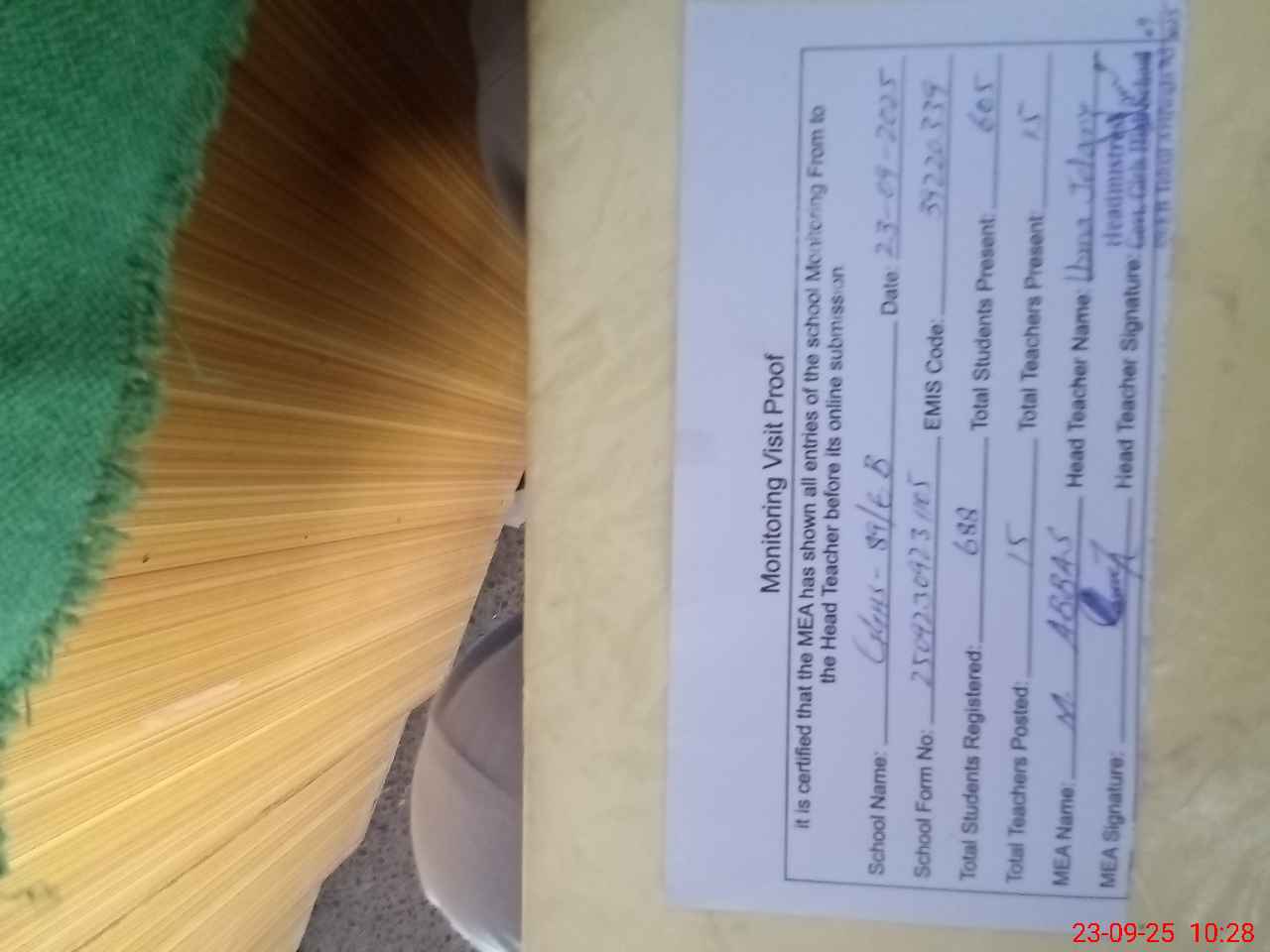 | Attendance Register | Head Teacher | MEA with School | Visit Proof |
