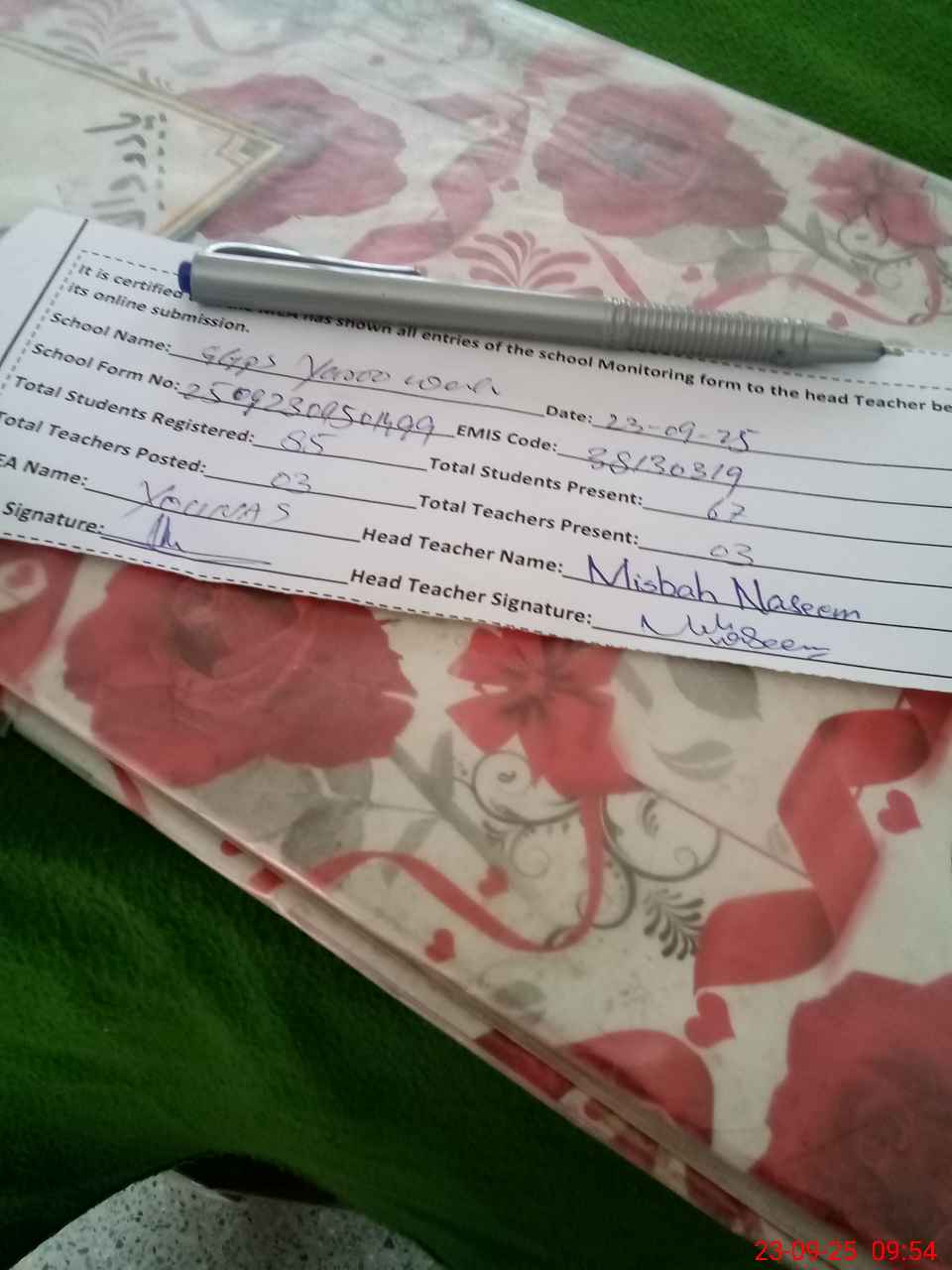 | EMIS Code: 38130319 | Name of School: GGPS YAROO WALA | |||