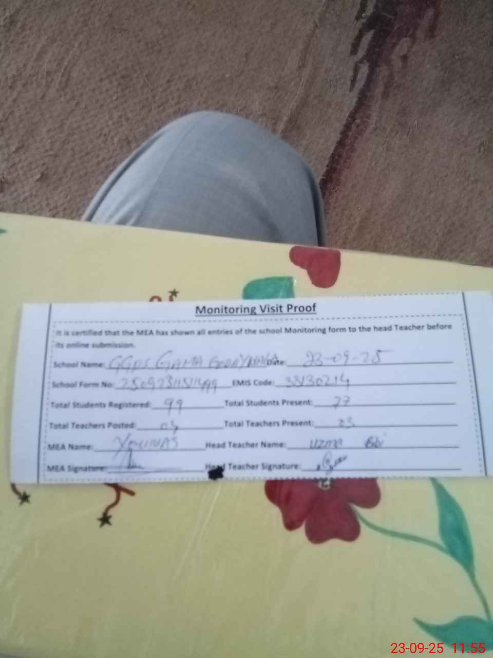| EMIS Code: 38130214 | Name of School: GGPS GAMA GODEY WALA | |||