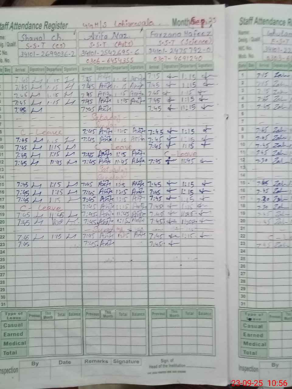 | Name: Bu**** Sa**** Designation: (School Headmaster's/Headmistress's) Head Mistress Phone/Cell Number: 03**** |
