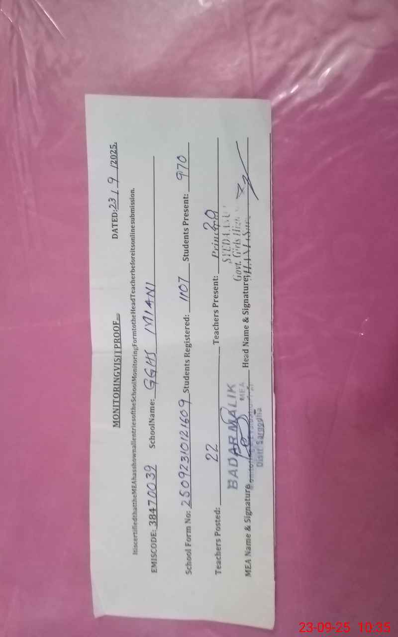 | Certified that this School was Inspected by the Undersigned MEA/DMO Today and the Information Stated Above is as Per Record. | |||||