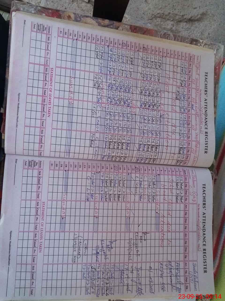 | Attendance Register | Head Teacher | MEA with School | Visit Proof |