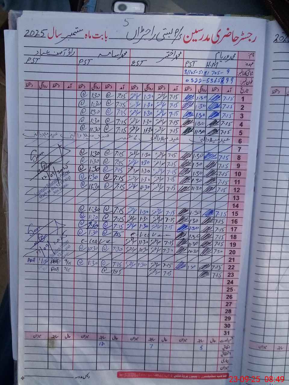 | Name: MU**** WA**** Designation: (School Headmaster's/Headmistress's) PST Phone/Cell Number: 03**** |