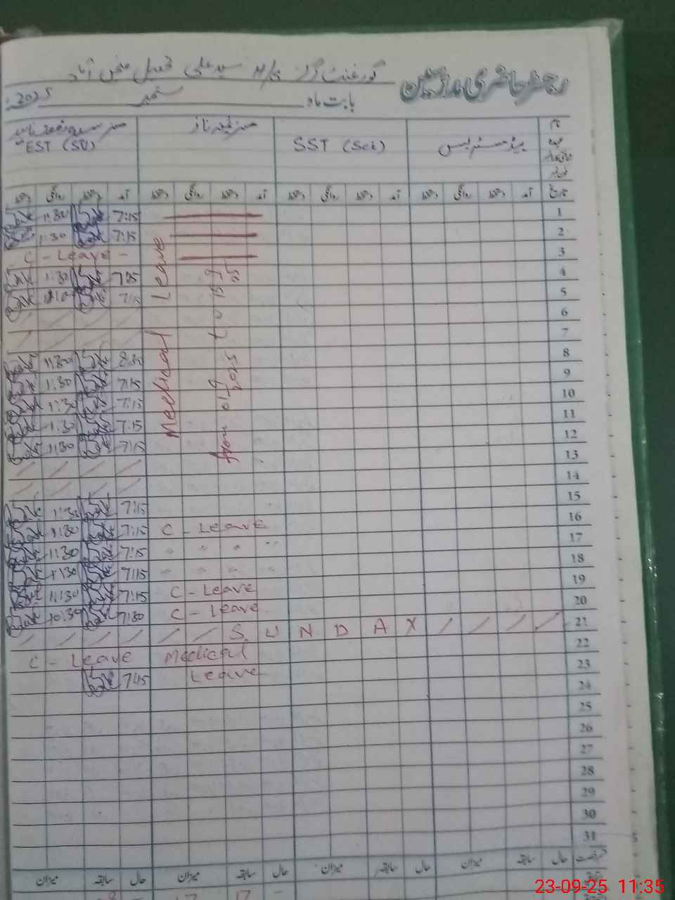 | 31**** | Sa**** Na**** | Regular | 0 | 0 | 0 | 0 | 0 | 0 | 0 | 0 | 0 | Medical | |