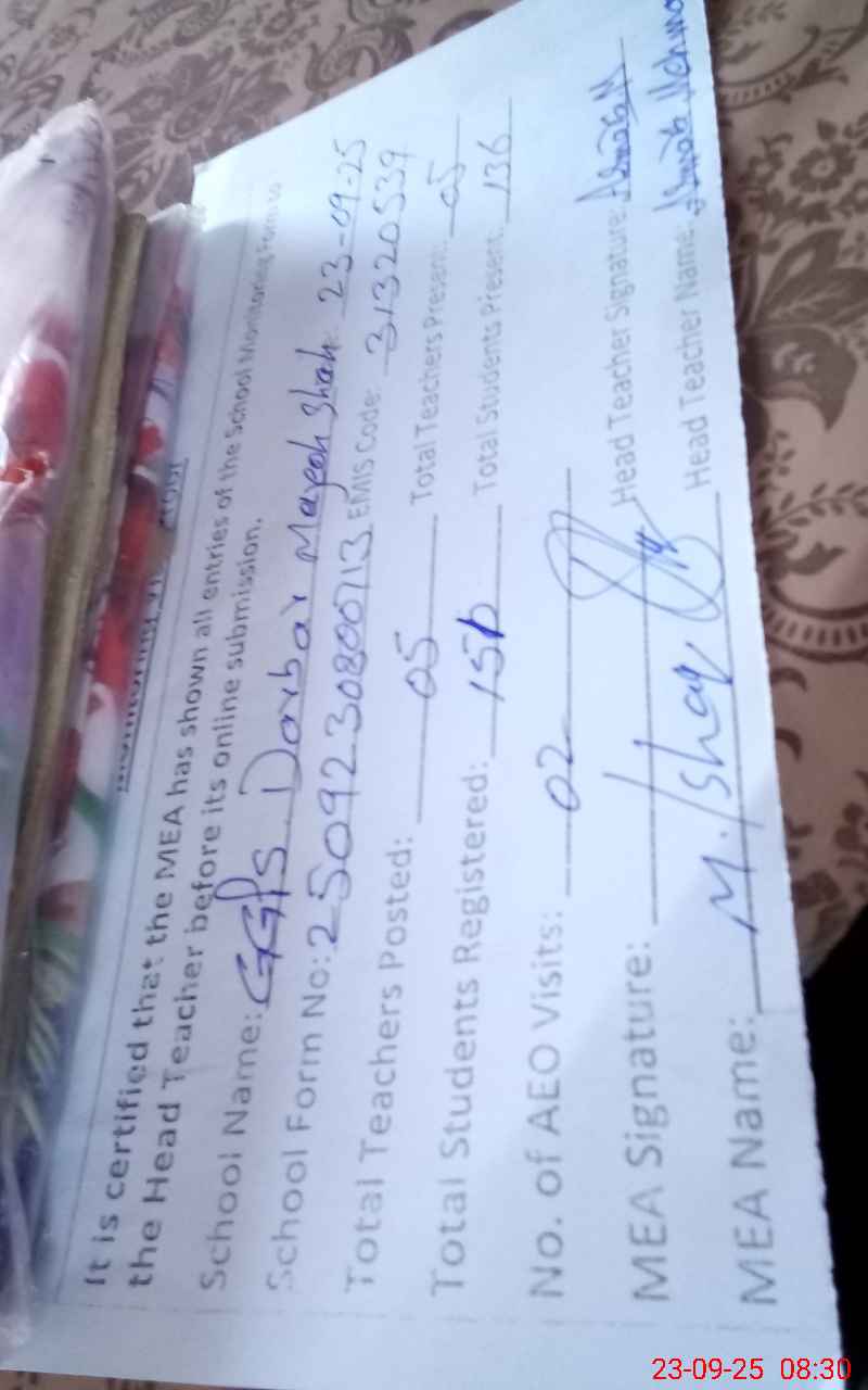 | EMIS Code: 31320539 | Name of School: GGPS DARBAR MAJEOH SHAH | |||