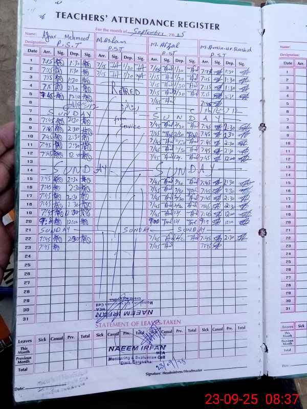 | Name: Az**** Me**** Designation: (School Headmaster's/Headmistress's) PST Phone/Cell Number: 03**** |