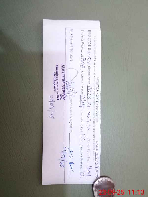 | EMIS Code: 38410531 | Name of School: GGES CHAK NO. 7 SB SYEDAN WALA | |||