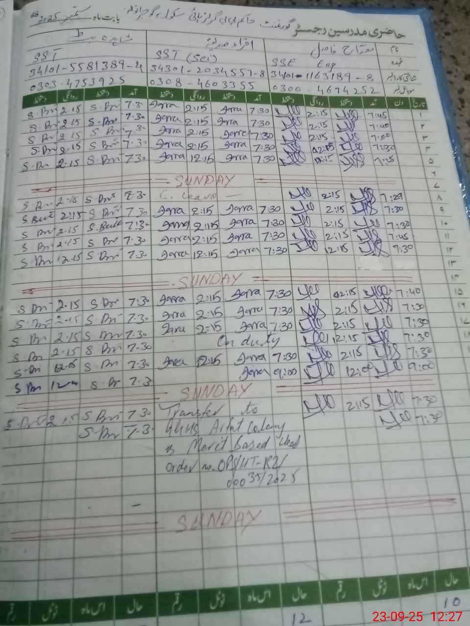 | Name: SA**** BA**** Designation: (School Headmaster's/Headmistress's) SNR HEADMISTRESS Phone/Cell Number: 03**** |