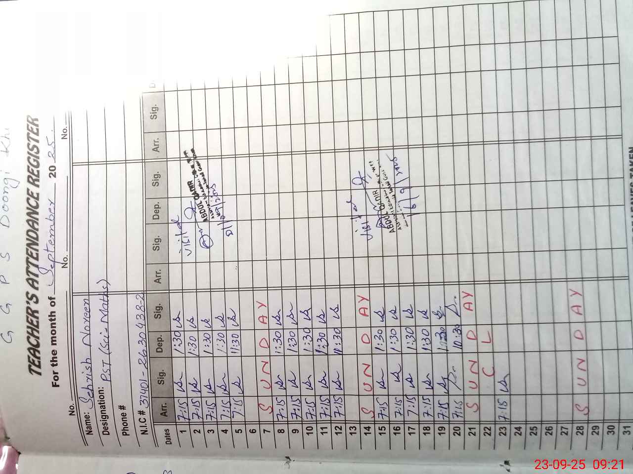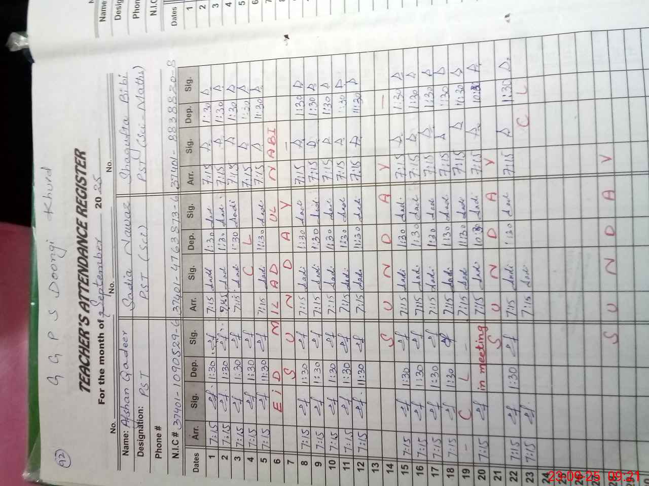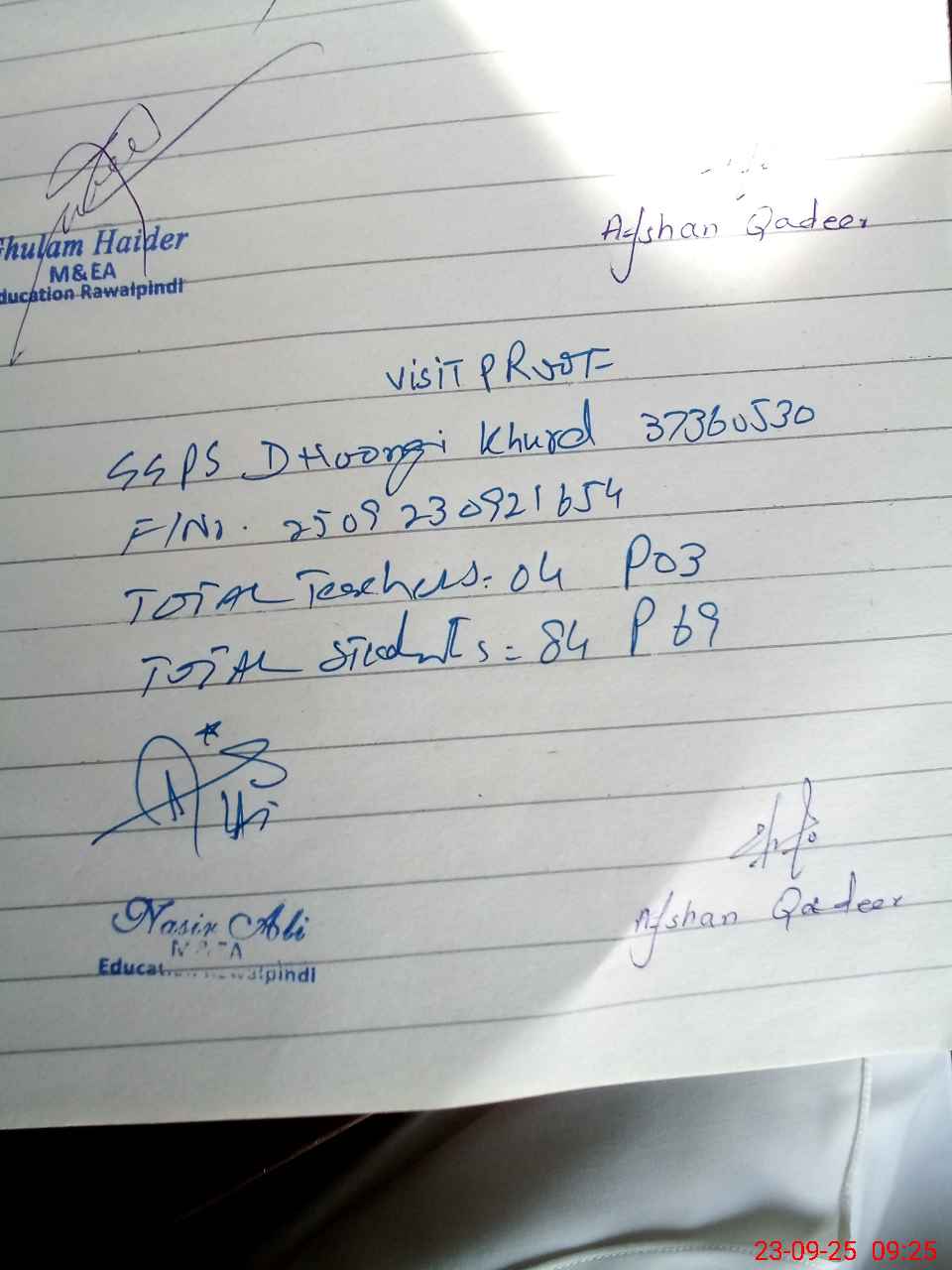 | Name: Af**** Qa**** Designation: (School Headmaster's/Headmistress's) PST Phone/Cell Number: 03**** |