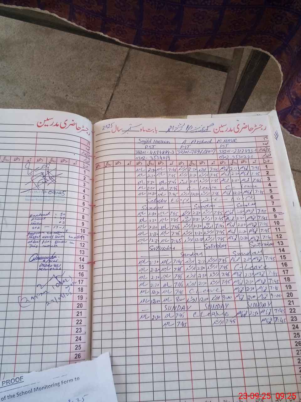 | Name: Mu**** Na**** Designation: (School Headmaster's/Headmistress's) PST Phone/Cell Number: 03**** |
