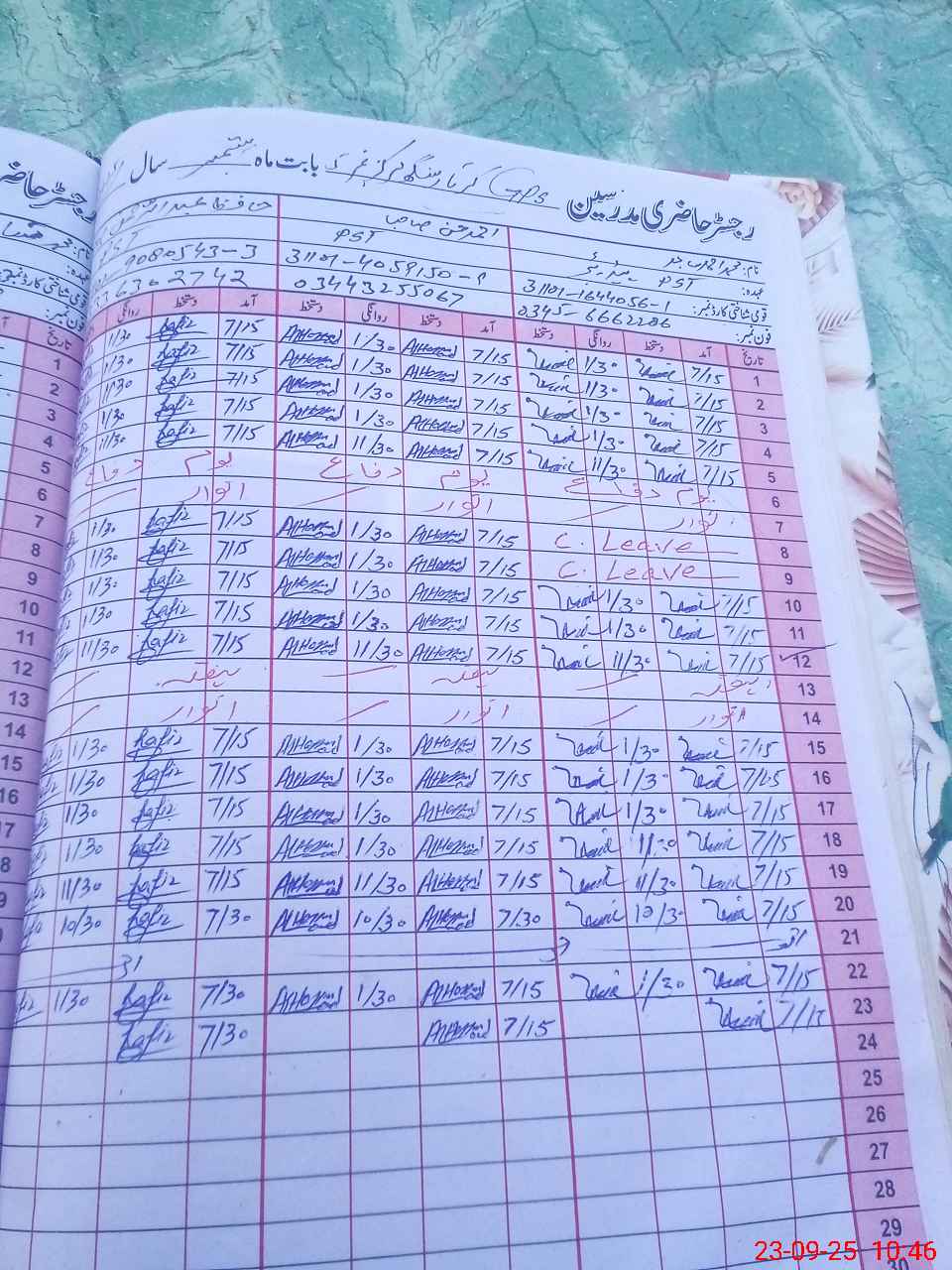 | CNIC | Full Name | Designation | R/C | Absence During Last Calender Month |