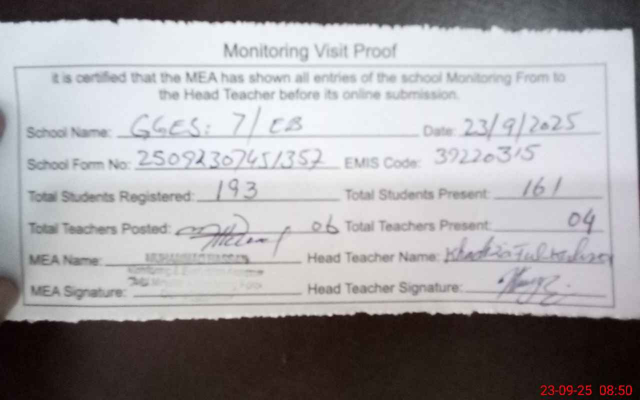 | EMIS Code: 39220315 | Name of School: GGES 7 EB POST OFFICE 7 EB | |||