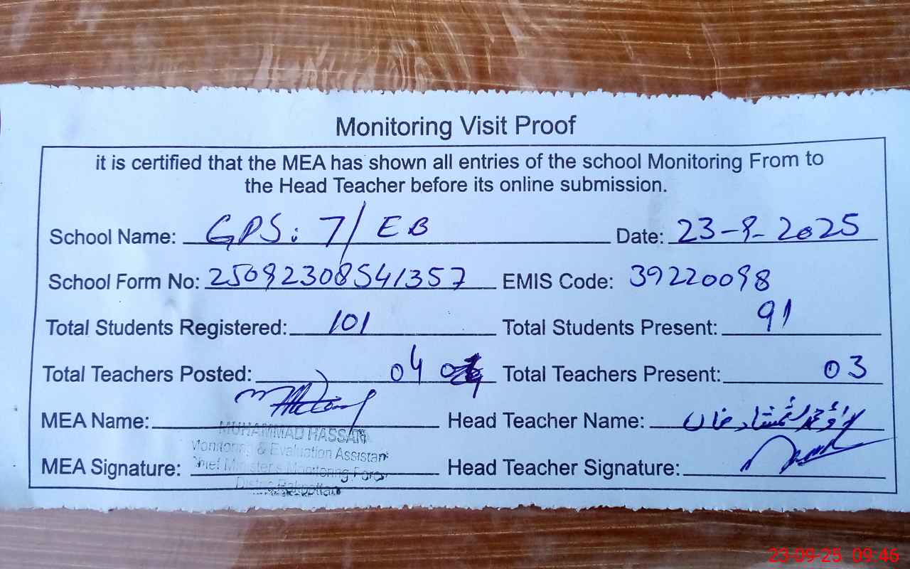 | EMIS Code: 39220098 | Name of School: GPS 7 EB | |||