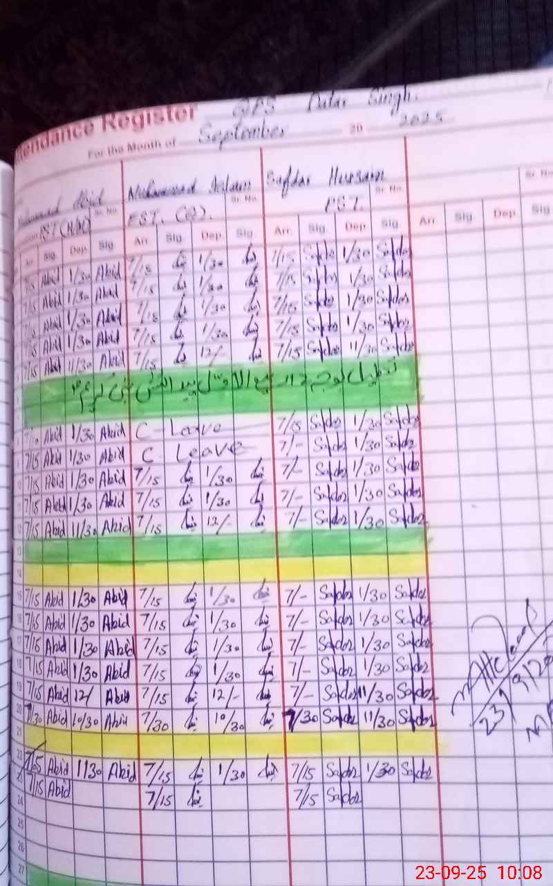 | CNIC | Full Name | Designation | R/C | Absence During Last Calender Month |