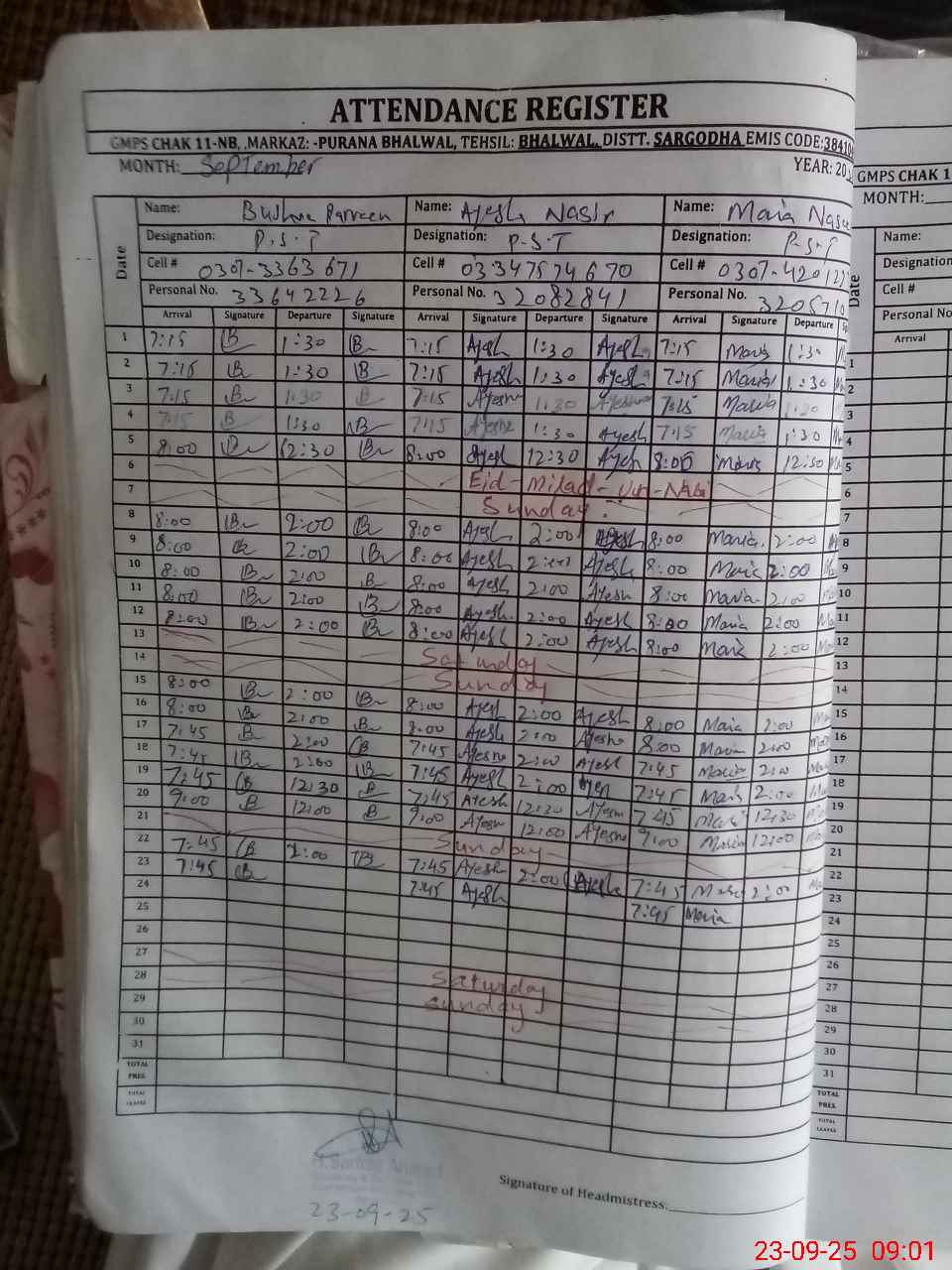 | Name: Bu**** Pa**** Designation: (School Headmaster's/Headmistress's) PST Phone/Cell Number: 03**** |