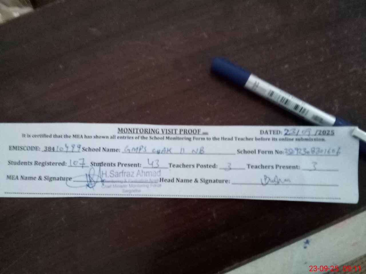 | EMIS Code: 38410499 | Name of School: GMPS CHAK NO.11 NB | |||