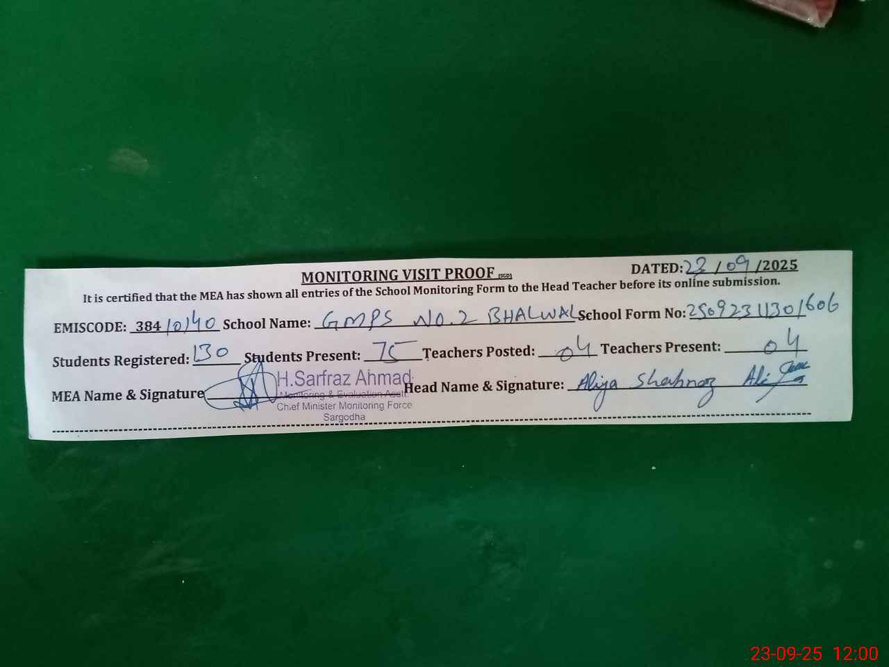| EMIS Code: 38410140 | Name of School: GMPS NO.2 BHALWAL | |||