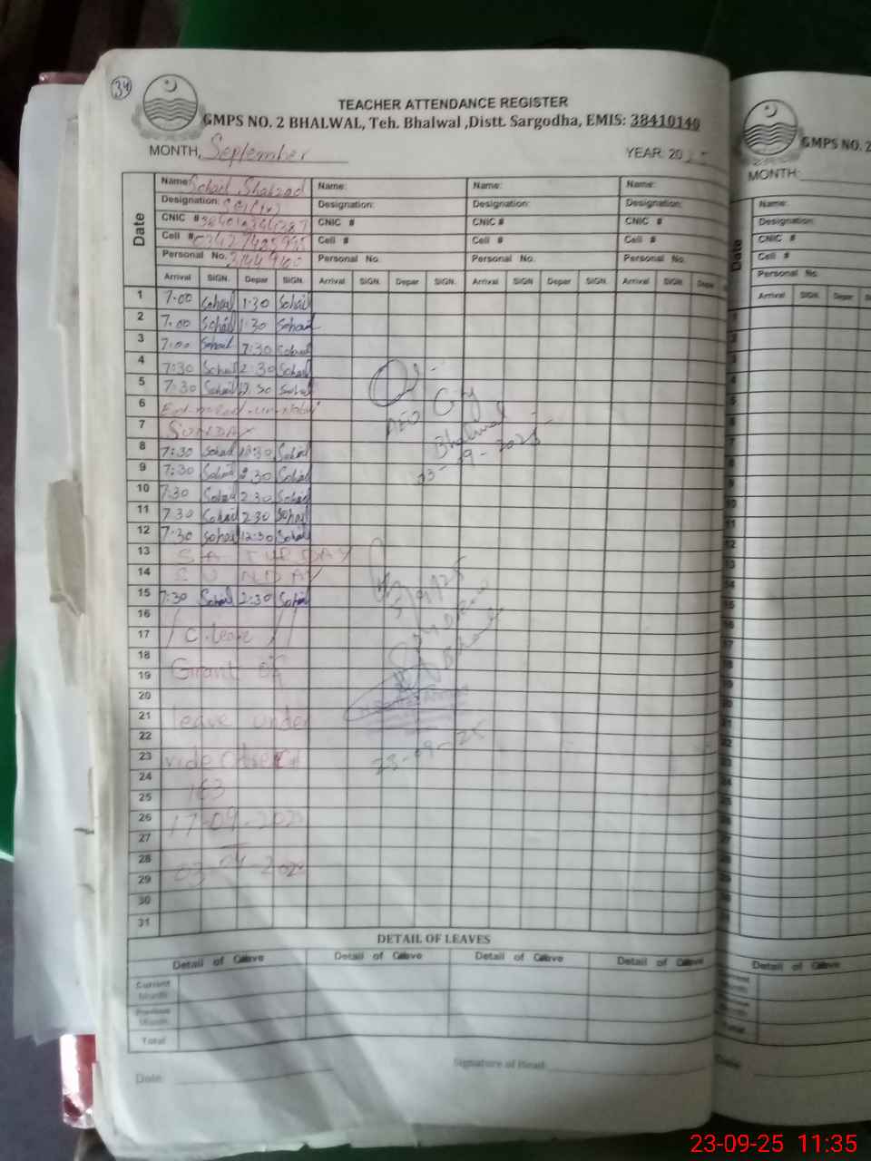 | Name: Al**** Sh**** Designation: (School Headmaster's/Headmistress's) PST Phone/Cell Number: 03**** |