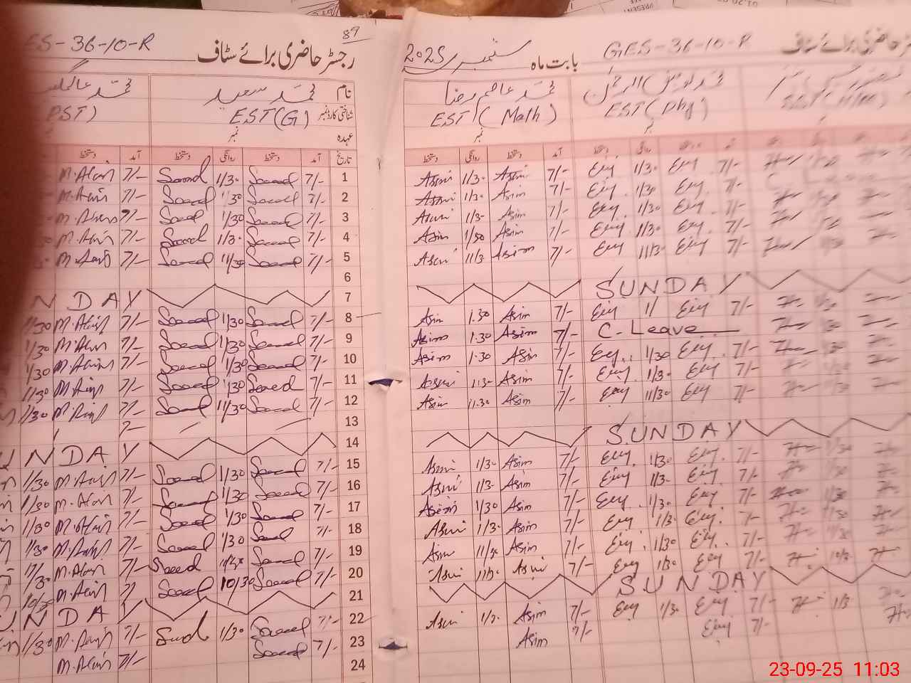 | CNIC | Full Name | Designation | R/C | Absence During Last Calender Month |