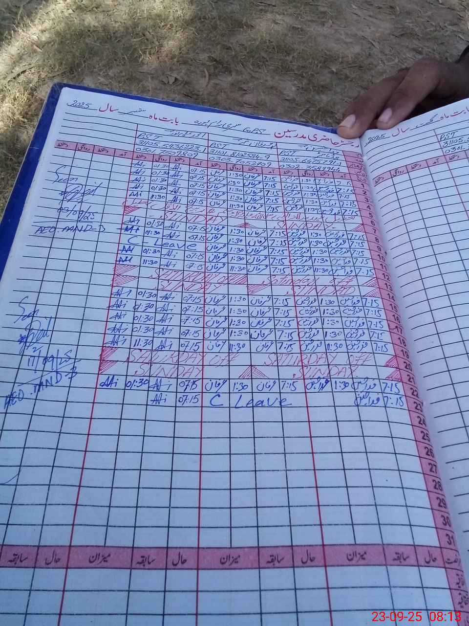 | CNIC | Full Name | Designation | R/C | Absence during last cal. month |