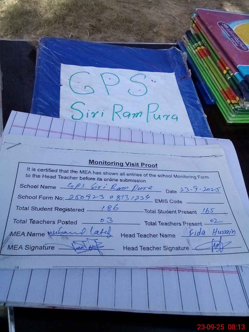 | Attendance Register | Head Teacher | MEA with School | Visit Proof |