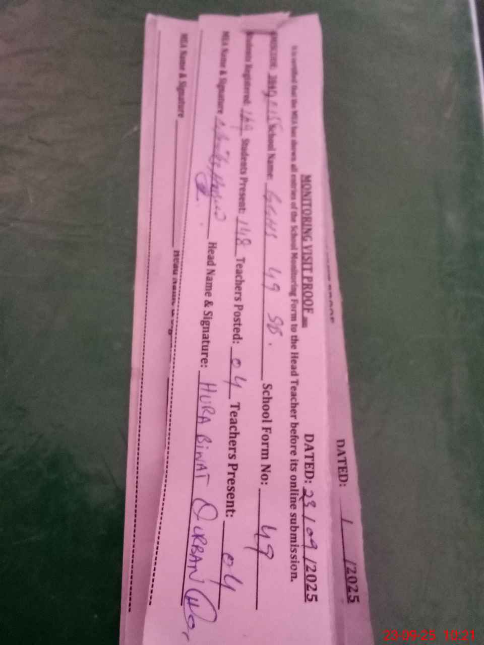| EMIS Code: 38420155 | Name of School: GGHS CHAK NO.49 SB | |||