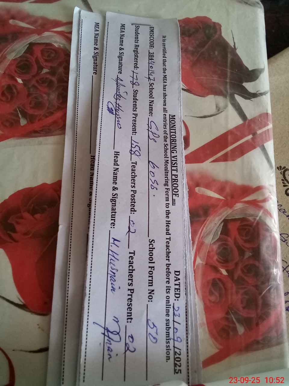 | Certified that this School was Inspected by the Undersigned MEA/DMO Today and the Information Stated Above is as Per Record. | |||||