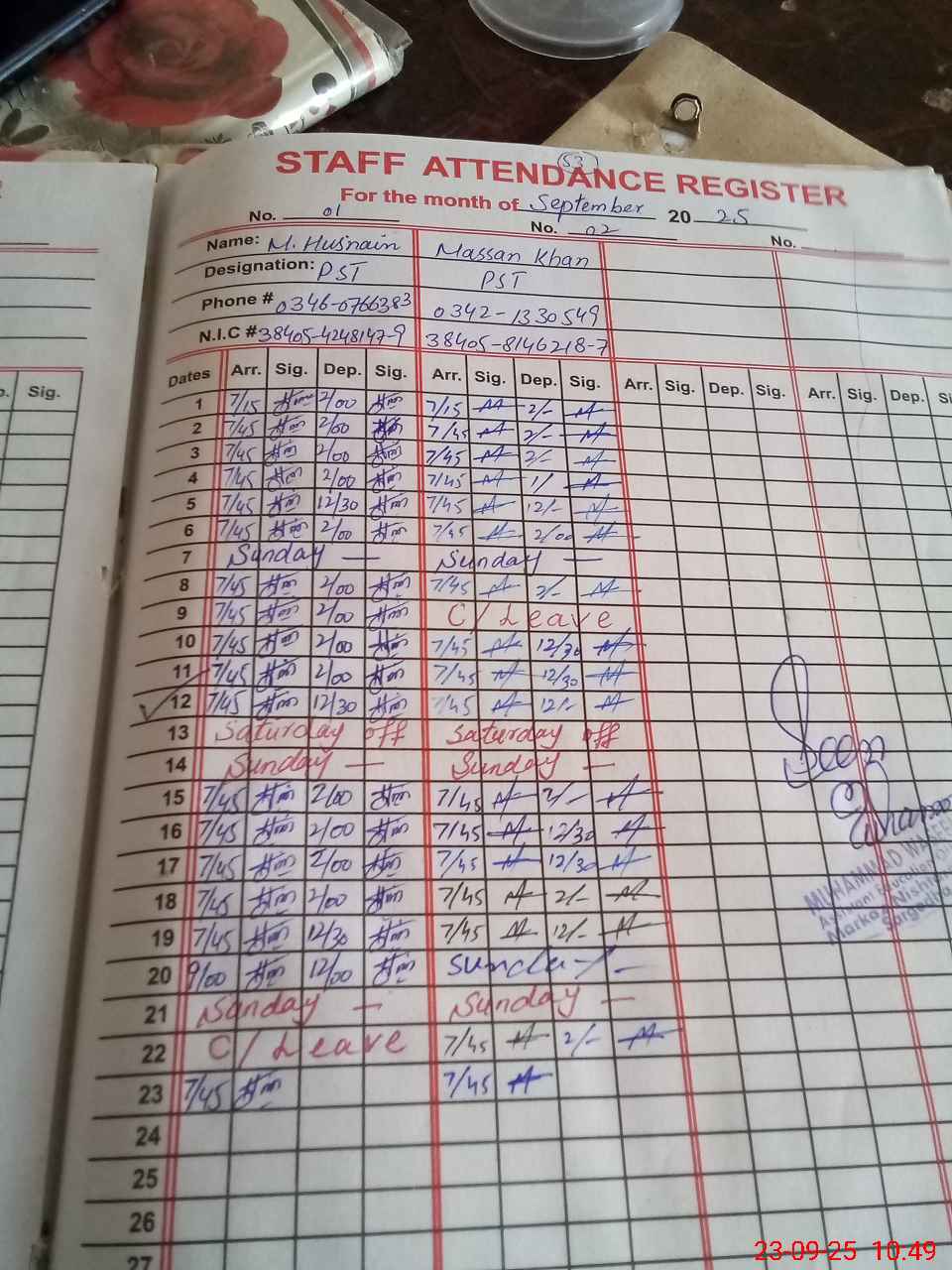 | Name: Mu**** Ha**** Designation: (School Headmaster's/Headmistress's) PST Phone/Cell Number: 03**** |