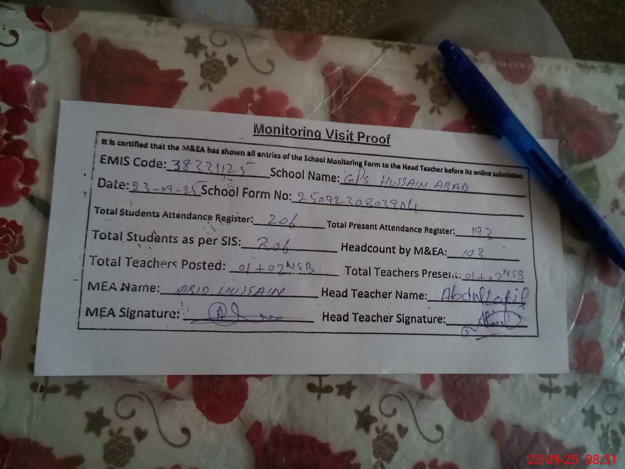 | EMIS Code: 38331125 | Name of School: GPS HUSSAIN ABAD | |||