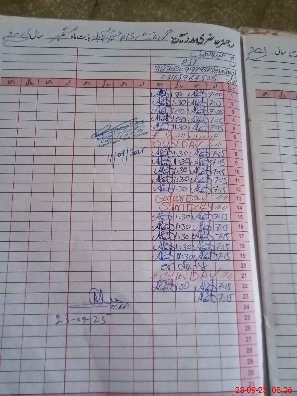 | Name: Ab**** La**** Designation: (School Headmaster's/Headmistress's) PST/PTC/JV Phone/Cell Number: 03**** |