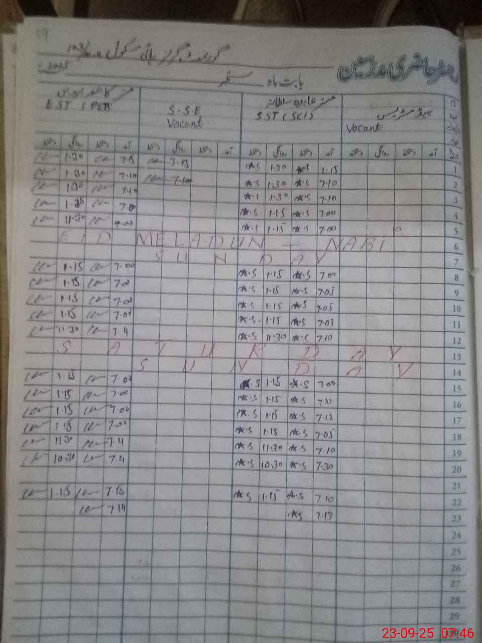 | CNIC | Full Name | Designation | R/C | Absence During Last Calender Month |