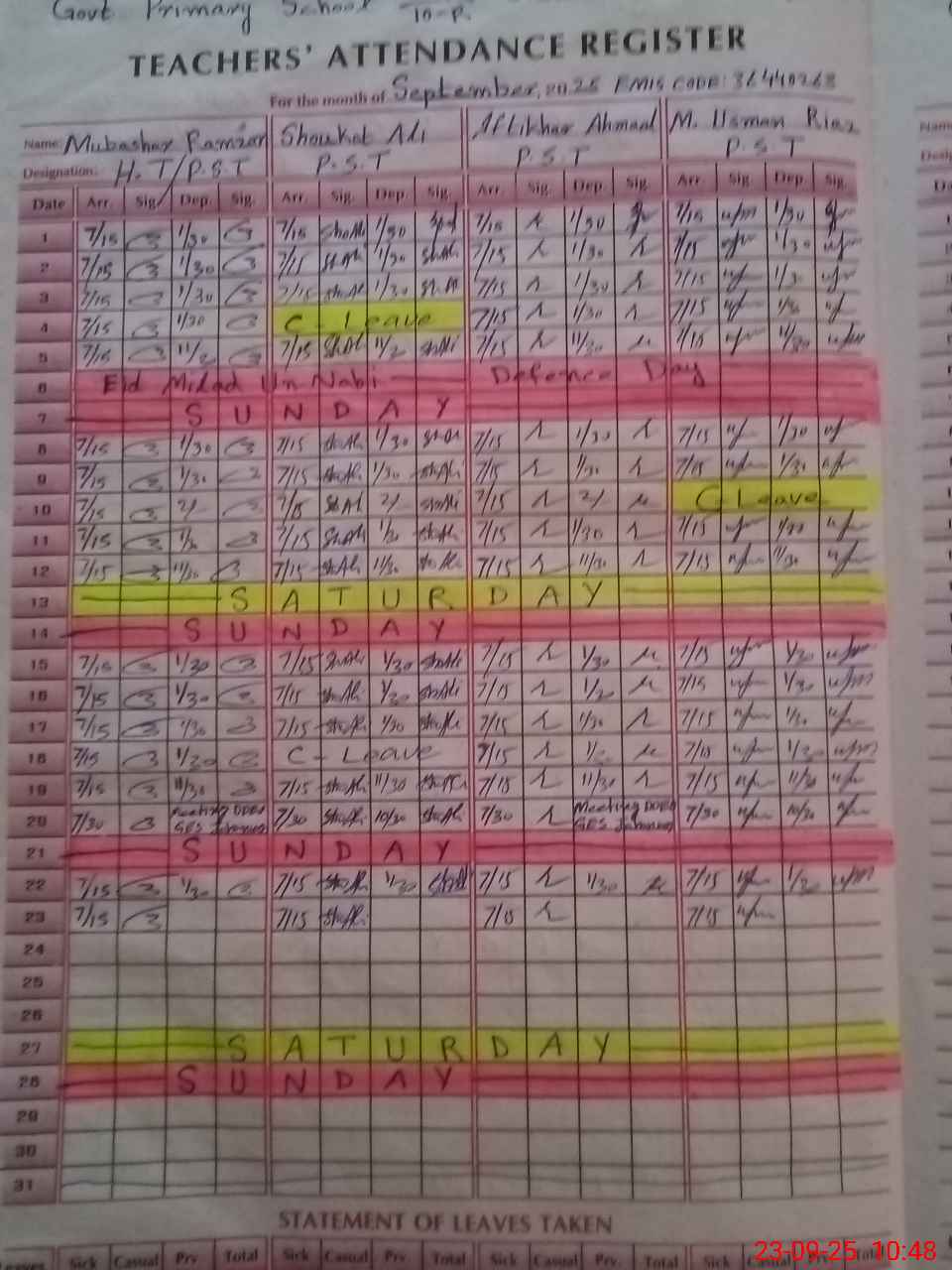 | Name: MU**** RA**** Designation: (School Headmaster's/Headmistress's) PST Phone/Cell Number: 03**** |