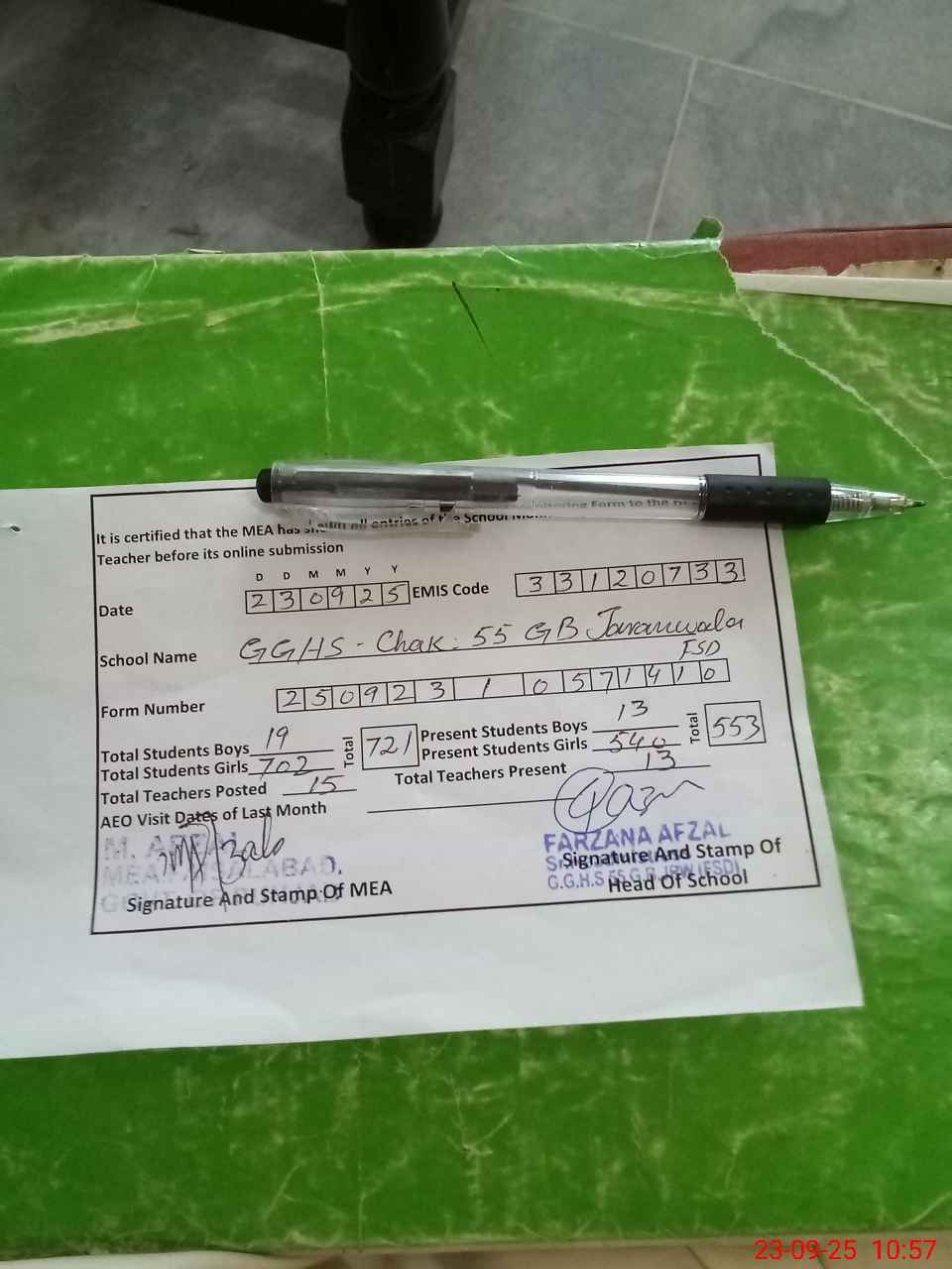 | EMIS Code: 33120733 | Name of School: GGHS CHAK 55 GB | |||
