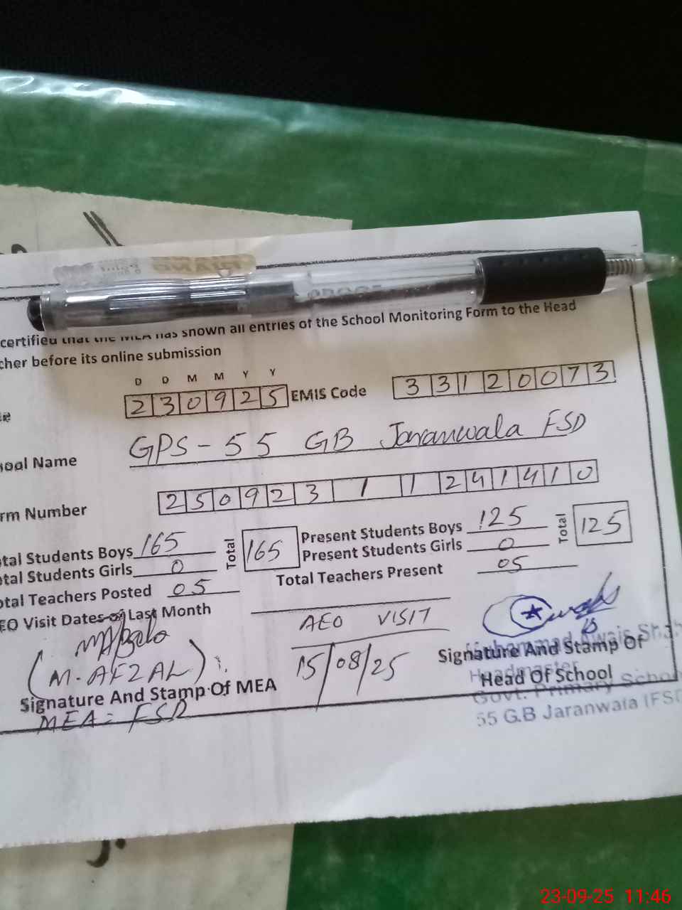 | Attendance Register | Head Teacher | MEA with School | Visit Proof |
