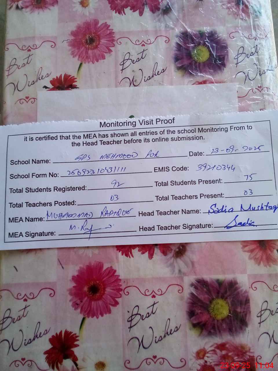 | EMIS Code: 39210344 | Name of School: GGPS MAHMOOD PUR | |||