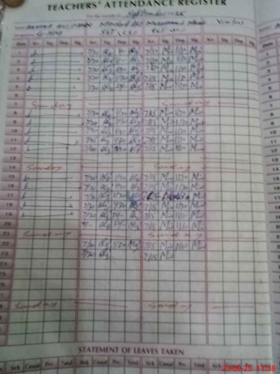 | 36**** | Af**** Ha**** Za**** | 1 | 0 | 0 | 1 | 0 | 0 | 0 | 0 | 0 | 0 | Absent (Un-Authorized) | |