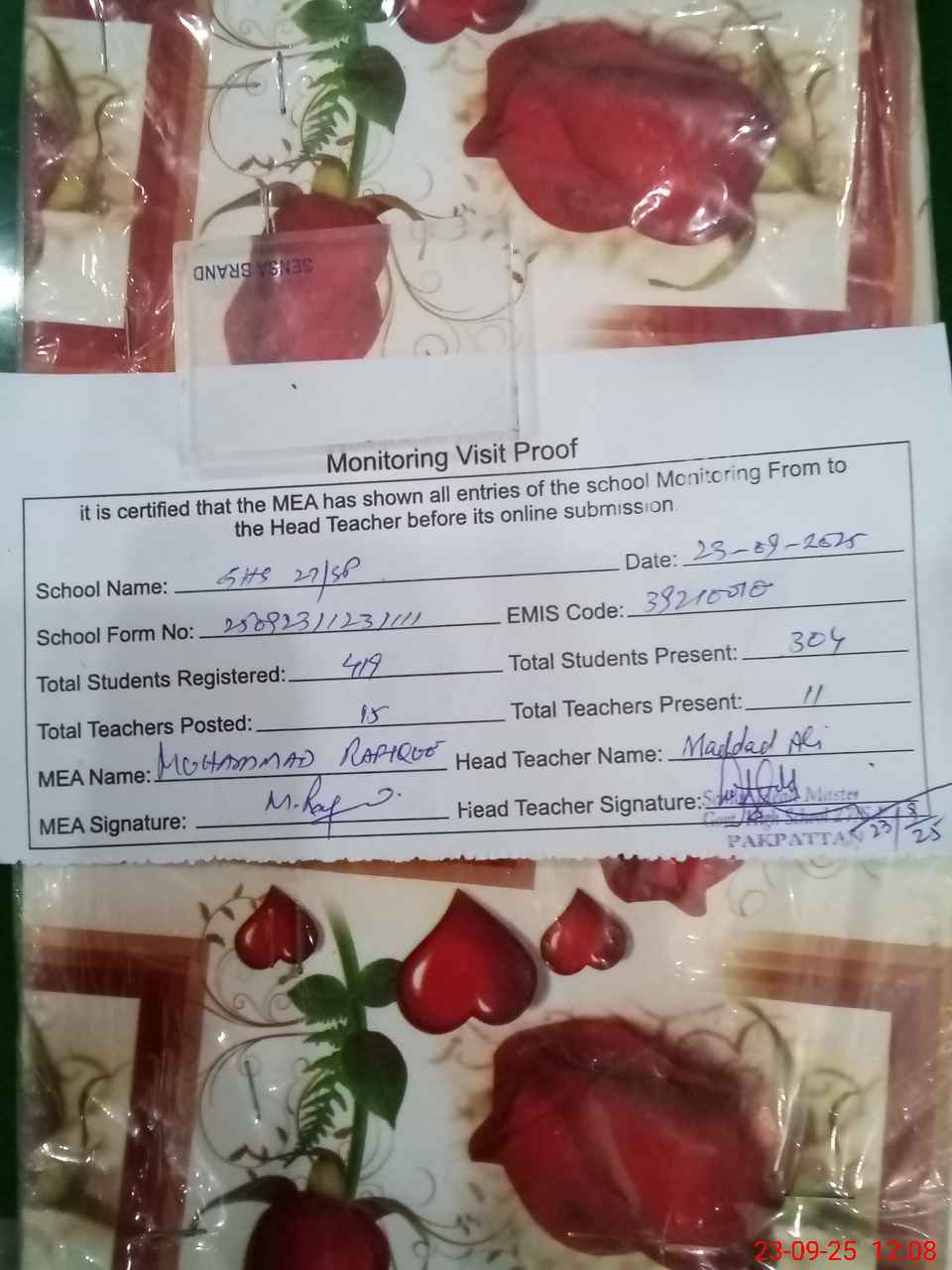 | EMIS Code: 39210010 | Name of School: GHS 27 SP | |||