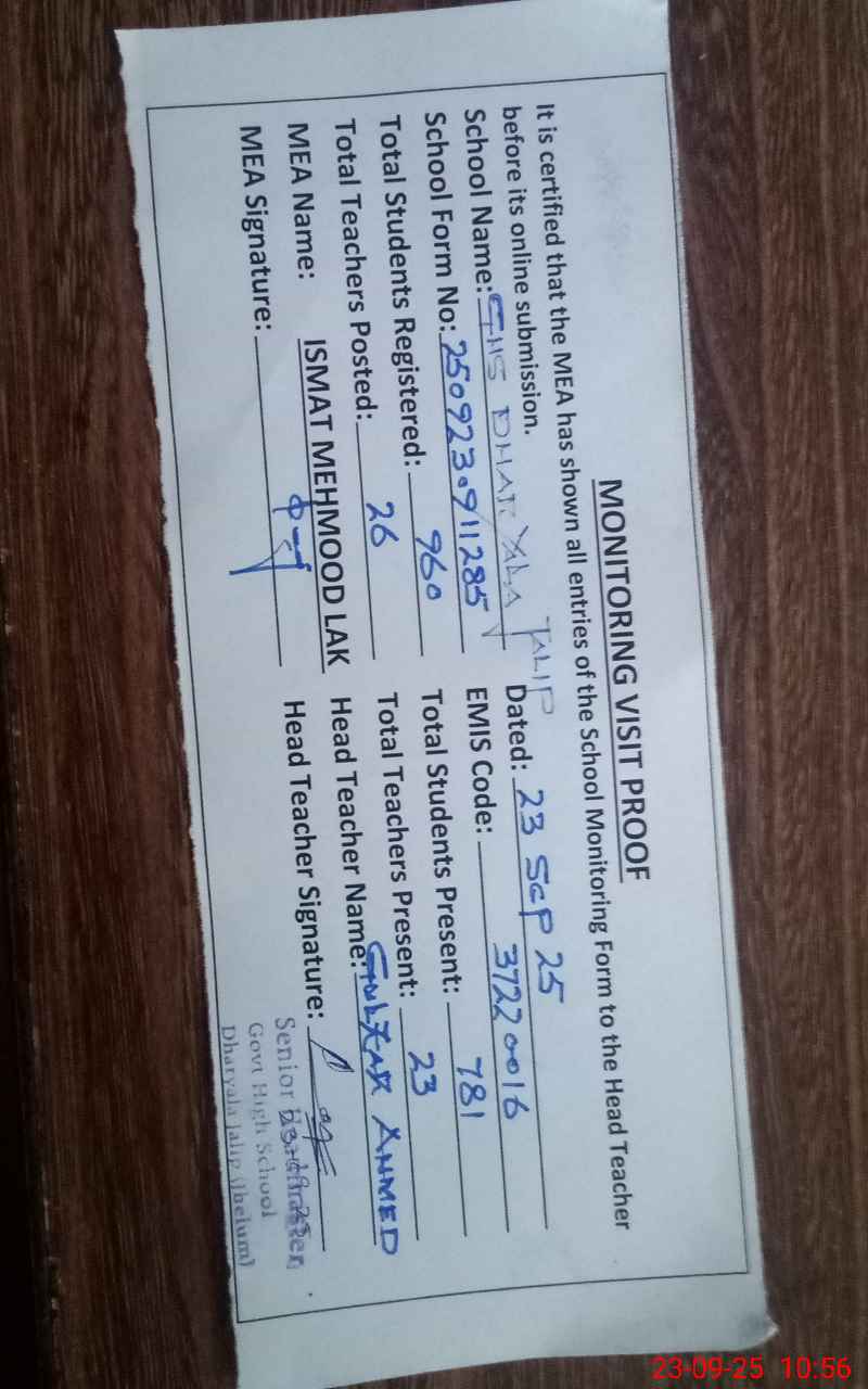 | EMIS Code: 37220016 | Name of School: GHS DHARYALA JALIB | |||