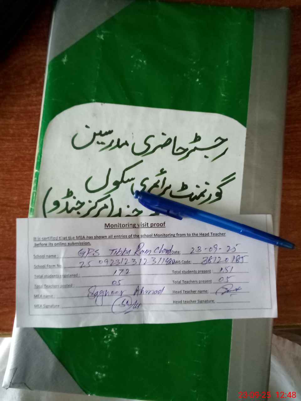 | EMIS Code: 38120185 | Name of School: GPS TIBBA RAMCHAND | |||