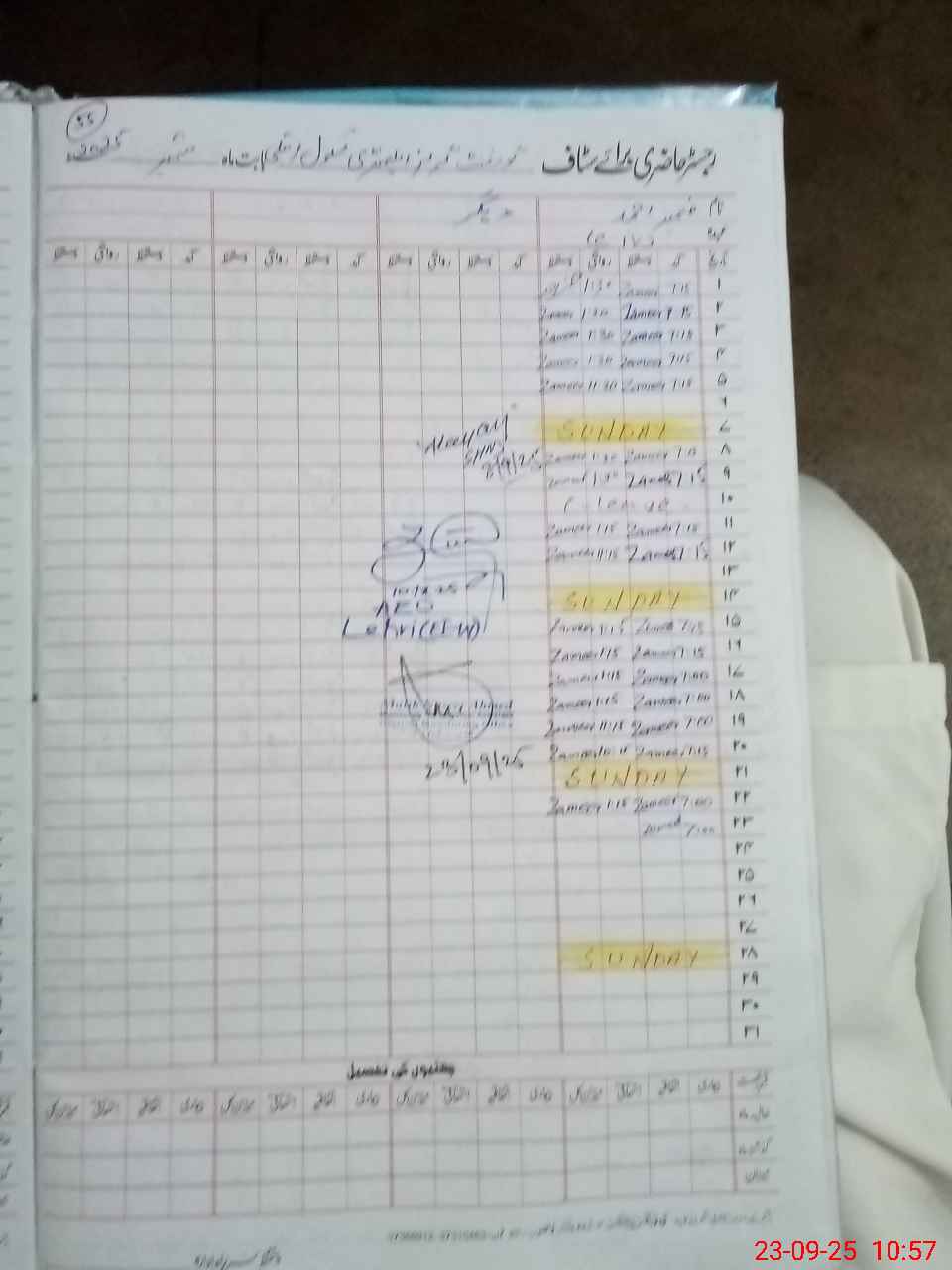 | CNIC | Full Name | Designation | R/C | Absence During Last Calender Month |