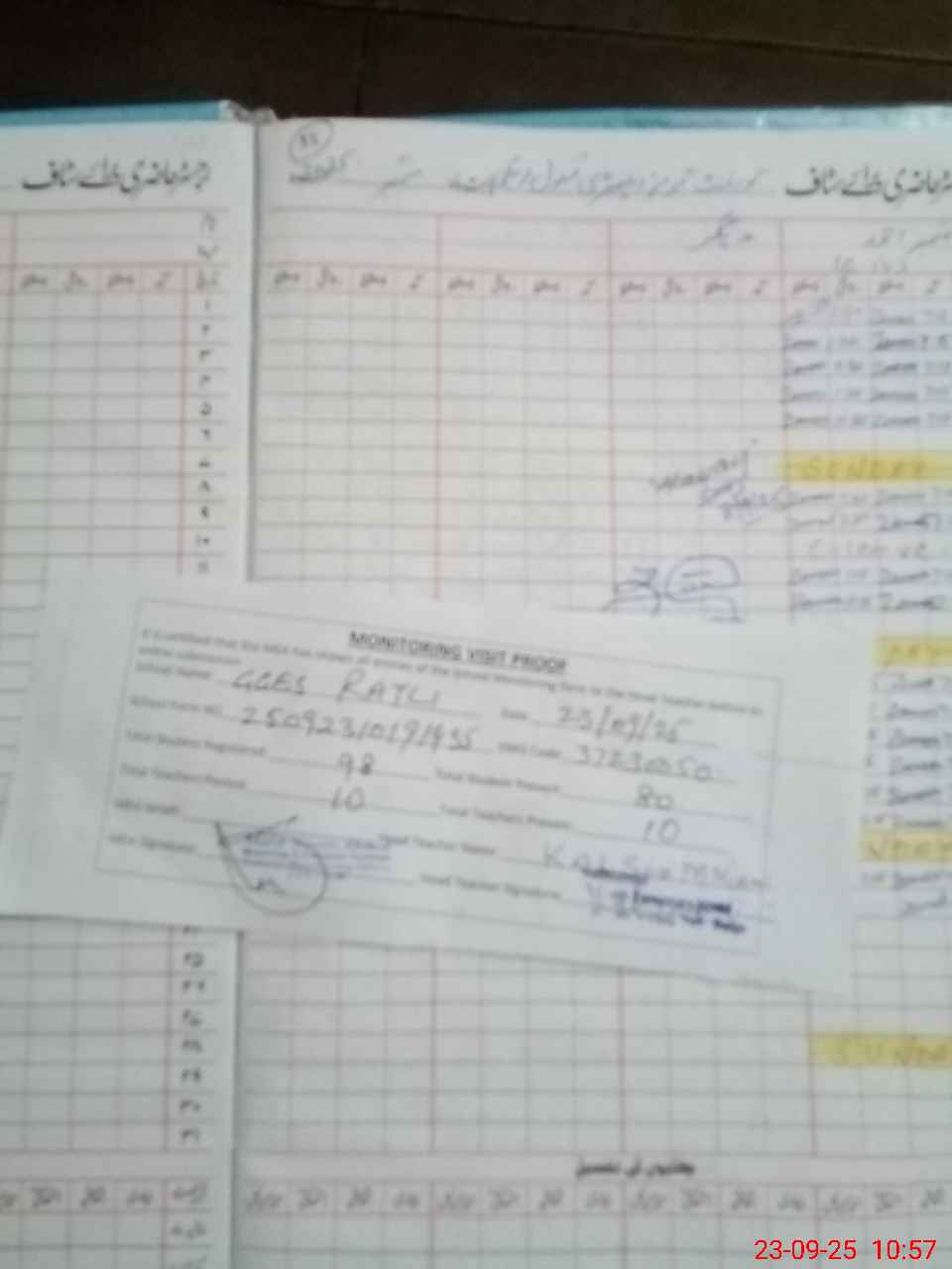 | Attendance Register | Head Teacher | MEA with School | Visit Proof |