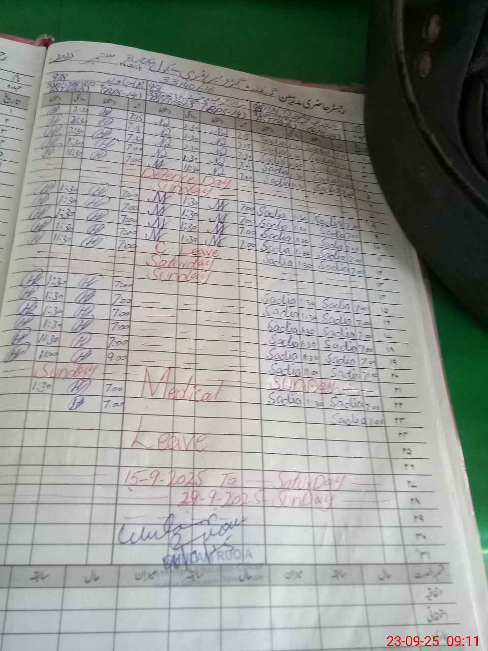 | Leave | Duty | Absent | Maternity | Medical | Ex- Pak |